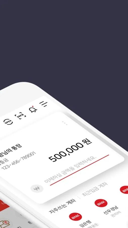 - 계좌조회, 이체 중심의 간결한 메인화면 구성