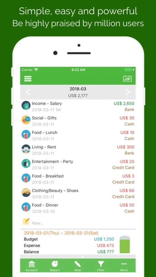 2.Powerful:daily accounting, managing categories, or even drawing detail reports, AndroMoney can easily manage it.