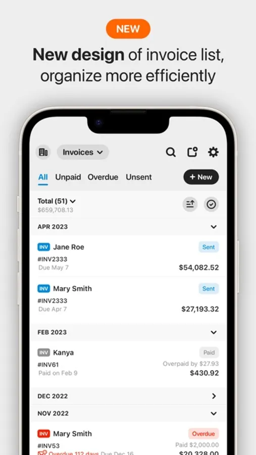 All created invoices and estimates are well organized and ready for you to check and mark paid.