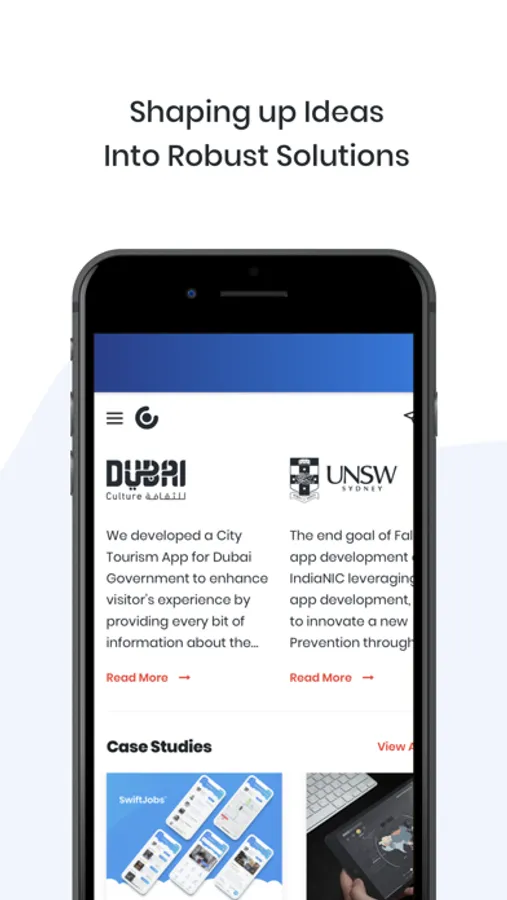 It offers quick access to the user everything about the company including the company’s vision, core values, leadership, and evolution besides the Contact-Us page and services. IndiaNIC’s corporate mobile app is well designed making it easy to navigate between pages.