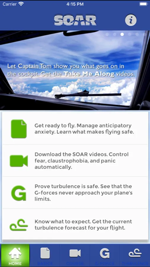 SOAR – established in 1982 - has opened up the world to 10,000 fearful fliers. This program is now available as an app created by the leading authority on flight phobia: author, airline captain and licensed therapist Tom Bunn, M.S.W., L.C.S.W.