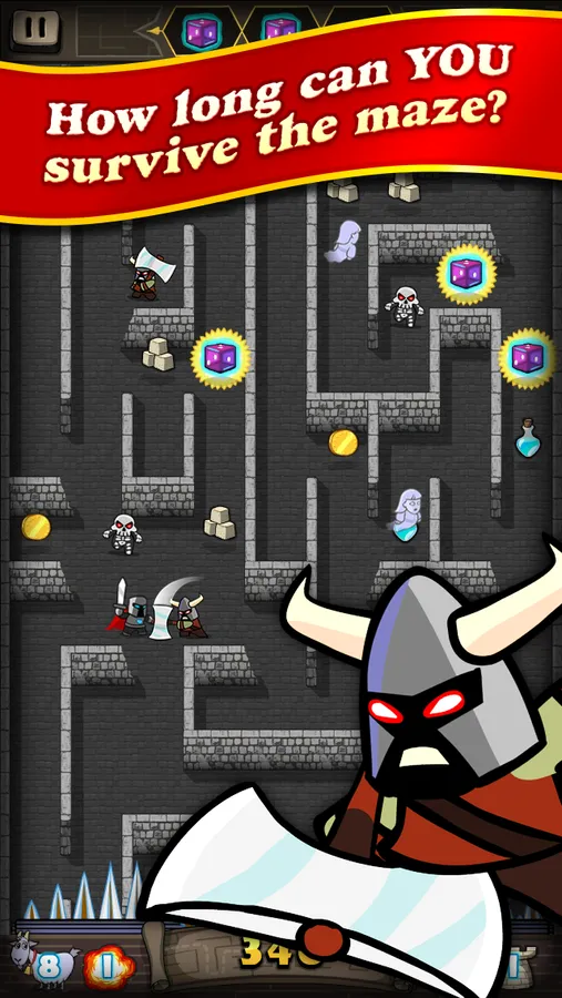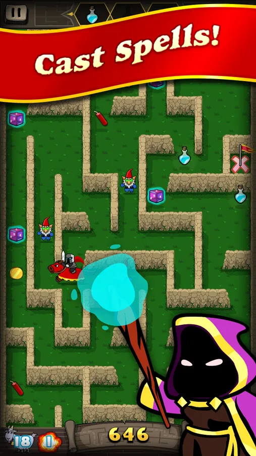 Solve the puzzles in the maze by matching items to earn bombs, spells, towers, and magical rewards! Cast spells to ride a magic horse, become invisible, freeze the maze, earn magic armor and more!