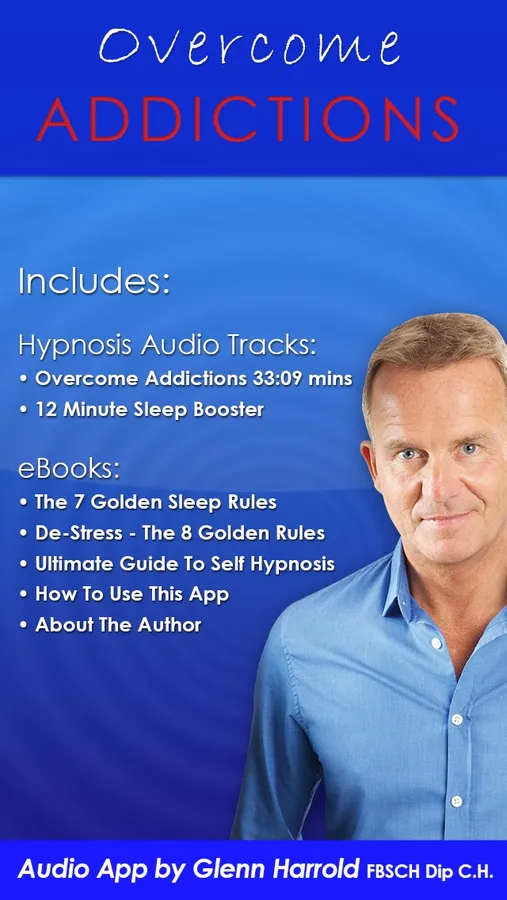 There are also a number of background echoed affirmations, which pan from left to right in your headphones. This deeply relaxing and powerful method of delivering multiple suggestions simultaneously to the unconscious mind can facilitate positive changes very quickly. At the end of the recording you will be gently brought back to full waking consciousness with a combination of suggestion and music. There are also a number of positive subliminal suggestions (listed inside), which are embedded in the fade out music and facilitate the overall effect. This powerful app gives you a completely safe and very effective way of overcoming any addictive pattern of behaviour and taking back control.