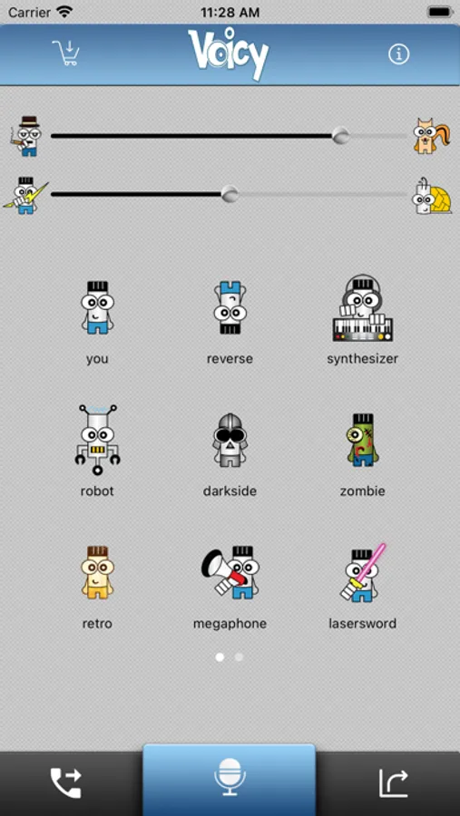 * Control pitch and speed of your voice live for endless voice combinations to sound like a mobster, chipmunk, or even a drunk person!