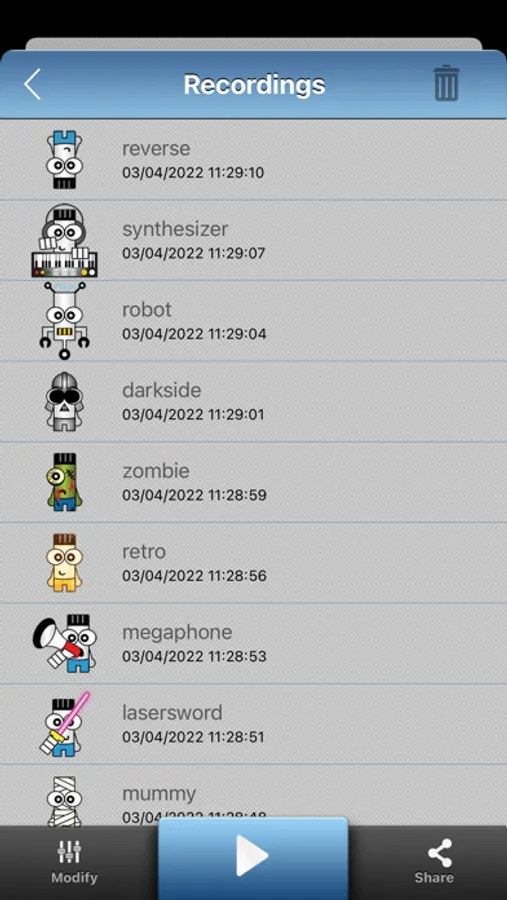 * Unique voice changer filters including synthesizer, zombie, reverse, mummy, ghost and a lot more!
