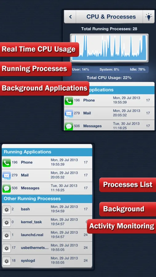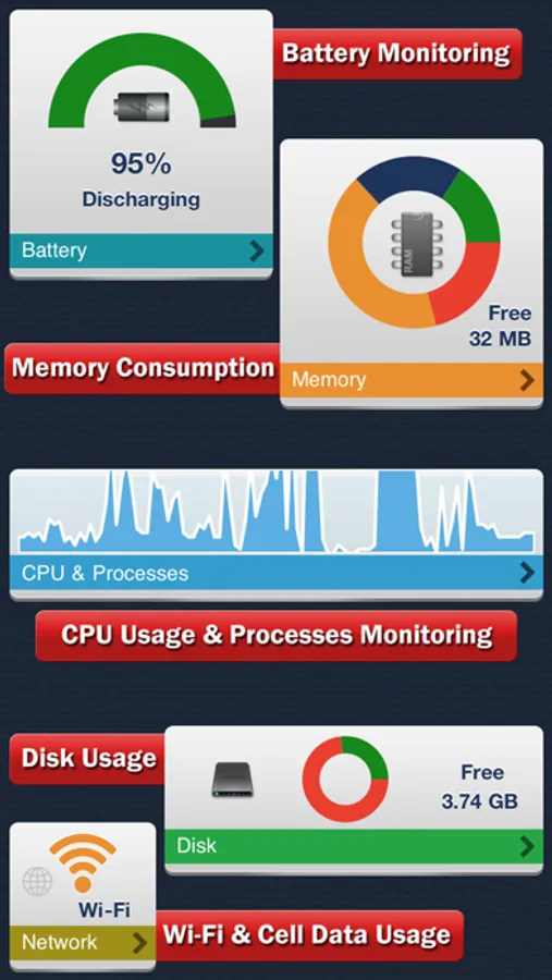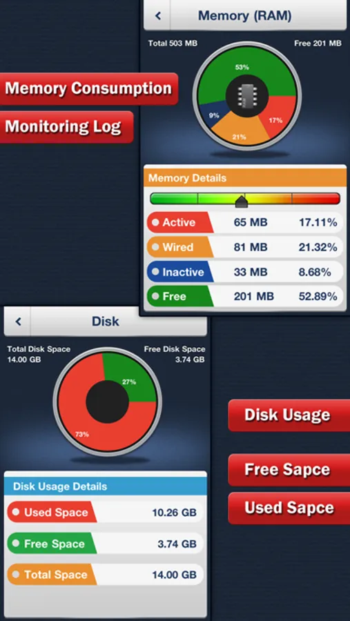 Would you like to control and monitor all activity of your iOS devices then System Status Monitor is the perfect app for you people. System Status Monitor is the ultimate app for activity monitoring, managing and optimizing your device performance. It provides significant system status information such as battery charge and activity log, memory manager, cpu and disk usage, network info with wifi or cellular identification, various hardware-related data etc.