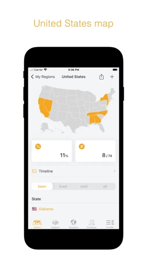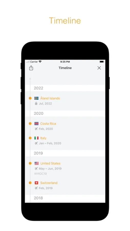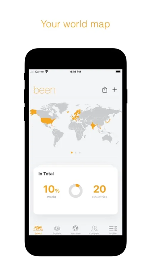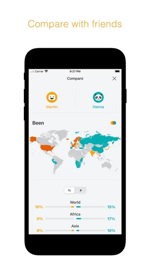 Keep track of countries and US states that you have visited, and if you wish, also when you visited. The app visualizes the visited countries both as a list, along with a ratio for each continent, and as a world map. The map can be shared on social networks, such as Instagram, Twitter and Facebook, using the standard iOS sharing functionality. You can compare your map with friends that also have the app, by sharing your map with them.