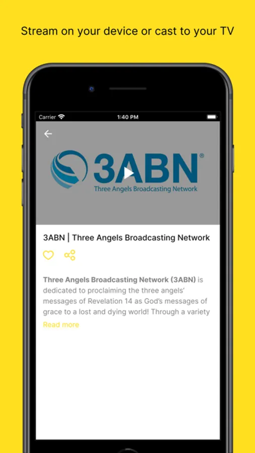 App offers live streaming of 3ABN television and radio networks including: