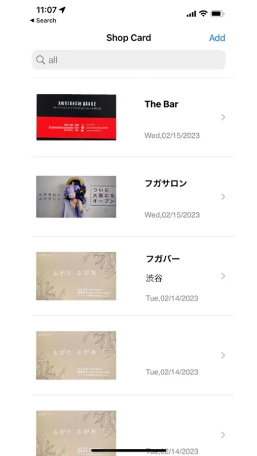 This is an application for managing restaurant and other store cards. You can manage bulky cards in a smart way. The front or back of the card can be photographed with a camera, and the QR code can be read to save information such as the URL.