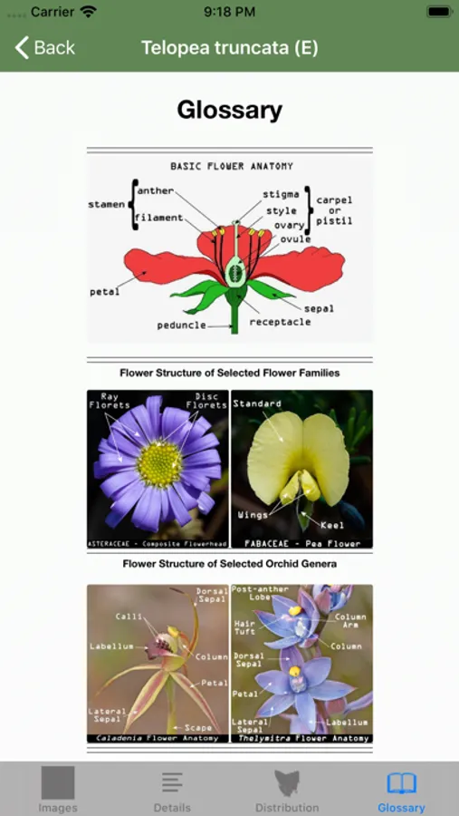 * A detailed glossary of more than 80 botanical terms including photographic descriptions for various terms.