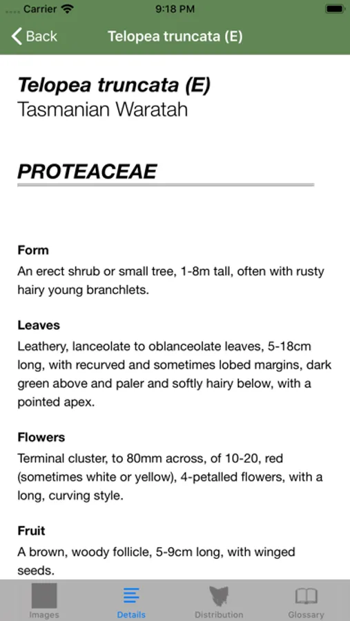 With over 850 detailed photographs the Flowering Plants of Tasmania app describes over 460 native species with 113 species found nowhere else than in Tassie. With a description of the botany of each species along with the preferred habitat and main flowering period the app will help you easily identify both common as well as rarer species. A distribution map also highlights where in the state the species typically occurs. Functional and easy to use flowers can be browsed by both plant form and flower colour. For those that already know their flowers a search function allows you to sort the list either by scientific (family, genus, species) or common names. Plants listed as threatened at either the state and/or national level are also highlighted with links to relevant sites for further information. Though specifically aimed at Tasmanian flora the app also has relevance for mainland Australia with 342, 300 , and 226 of the species listed being also found in Victoria, NSW, and South Australia respectively.