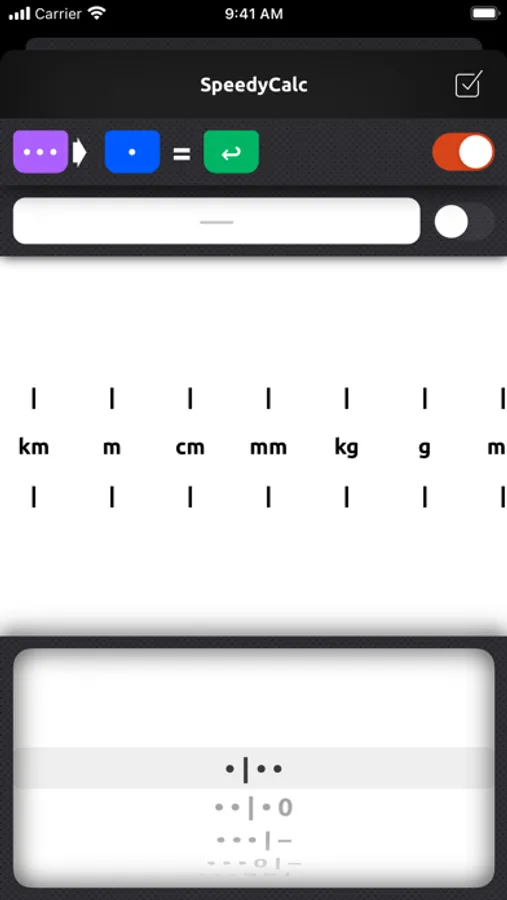 * SpeedyCalc provides a number of preset unit types which you can set up for display next to the entered values.