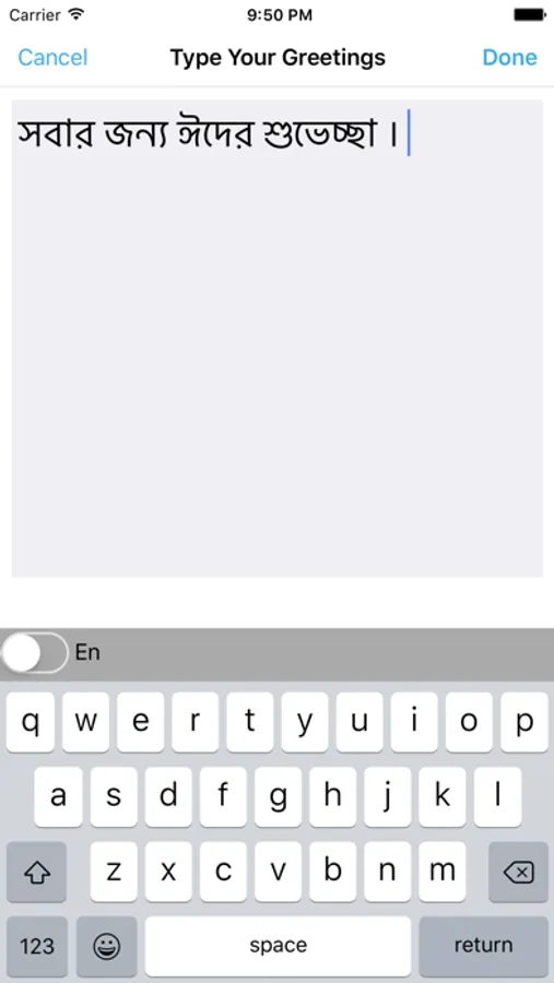 Create Custom Bengali Eid Card with Bangla Keyboard. This is 1st Time ever in appStore to create custom bangla card with Bengali Keyboard.