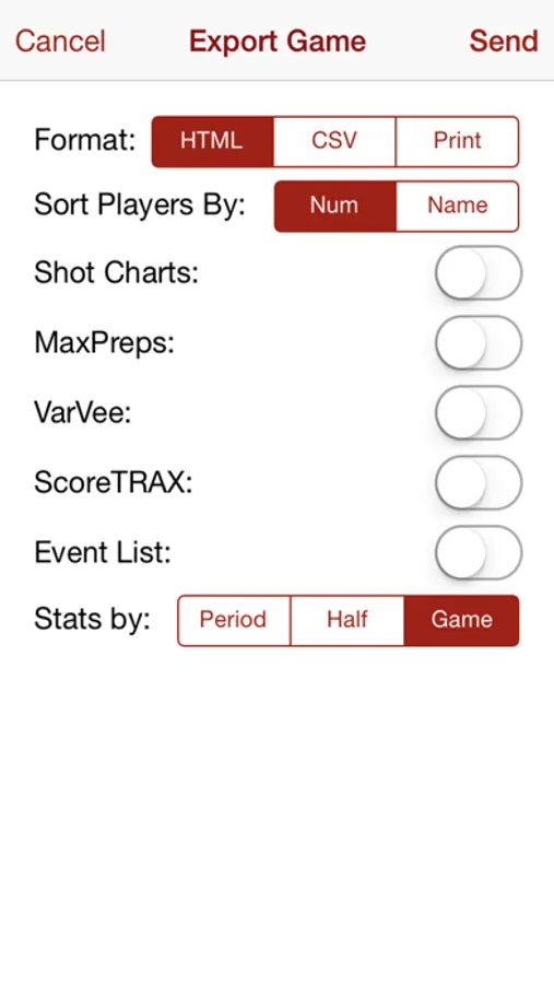 - Export game stats to MaxPreps, VarVee, ScoreTrax, or StatCrew