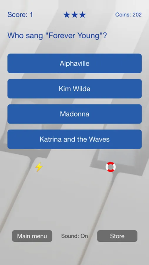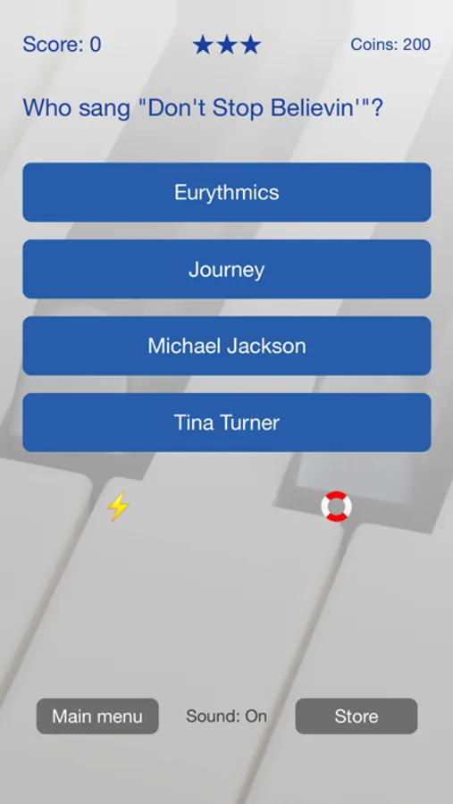 To make the quiz extra challenging the questions will be asked without you hearing the song. The answer is given in a multiple choice formula. A local leaderboard keeps track of your results.
