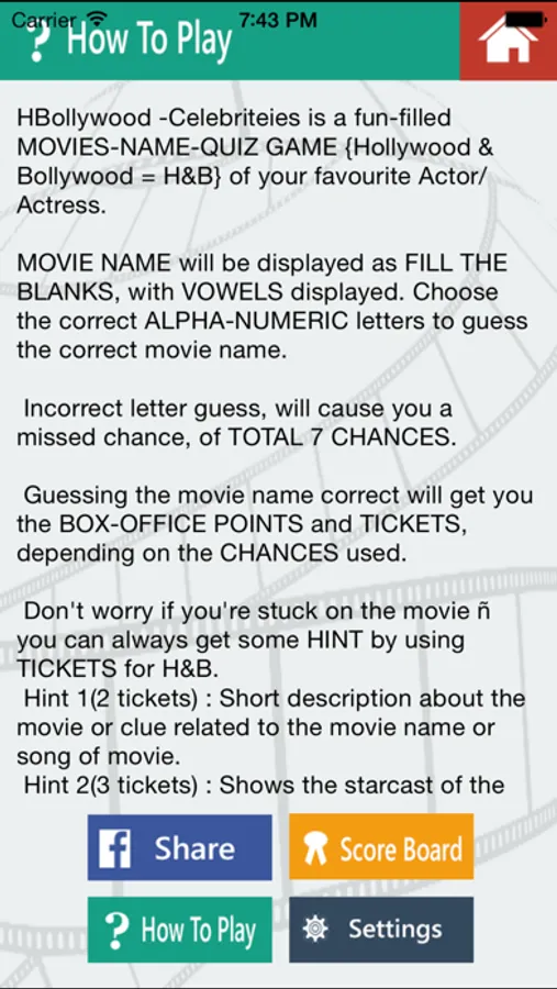 HBollywood also has the feature of two player game. Where two players can challenge each other with their own movies name.