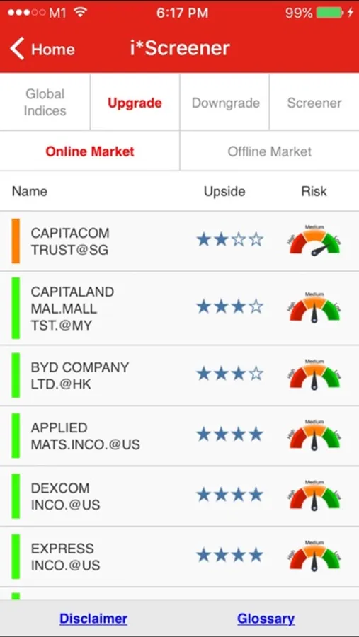 * iScreener enables the screening of over 6,000 stocks in 17 exchanges worldwide and generates a unique 4-Star rating and Risk rating system for investors