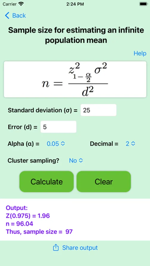 • Calculate the sample size for estimating an infinite population mean, finite population mean, infinite population proportion and finite population proportion