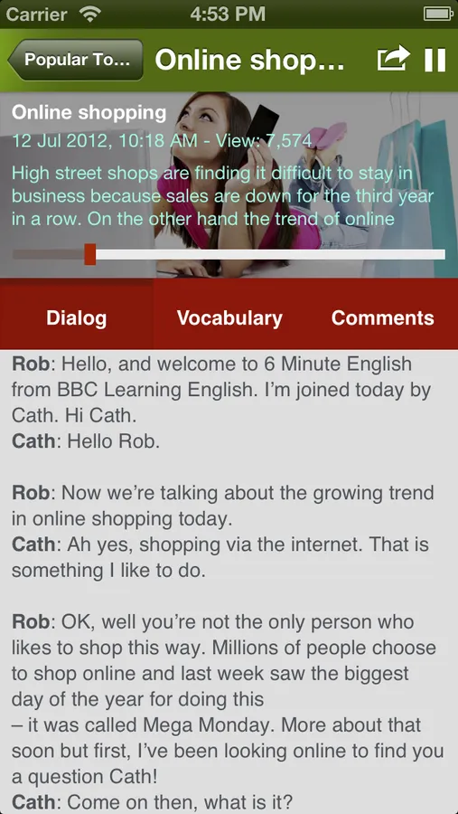 Learn how to speak and improve your English with this English Podcast. This app includes podcast that will teach you skills such as listening to English, understanding basic grammar, vocabulary and idioms, and also public speaking. Each podcast comes with full text to facilitate your understanding of the written language.