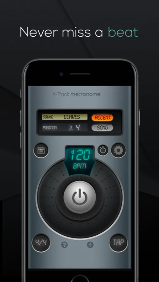 Choose your tempo spinning the big metronome wheel or tapping with you finger.