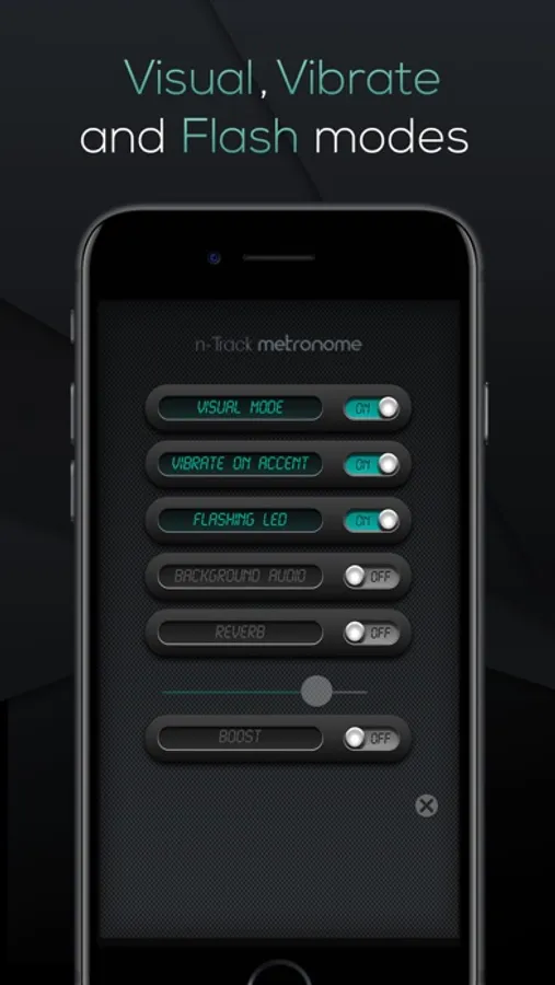 • Add a reverb effect to the metronome sound or boost the metronome volume with an integrated audio limiter effect