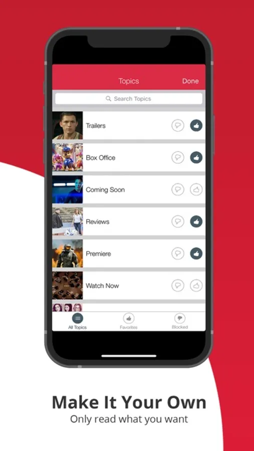 - Your very own news feed - choose the topics, studios and stars you want to follow, the topics you want blocked, and the topics you want to get notifications about