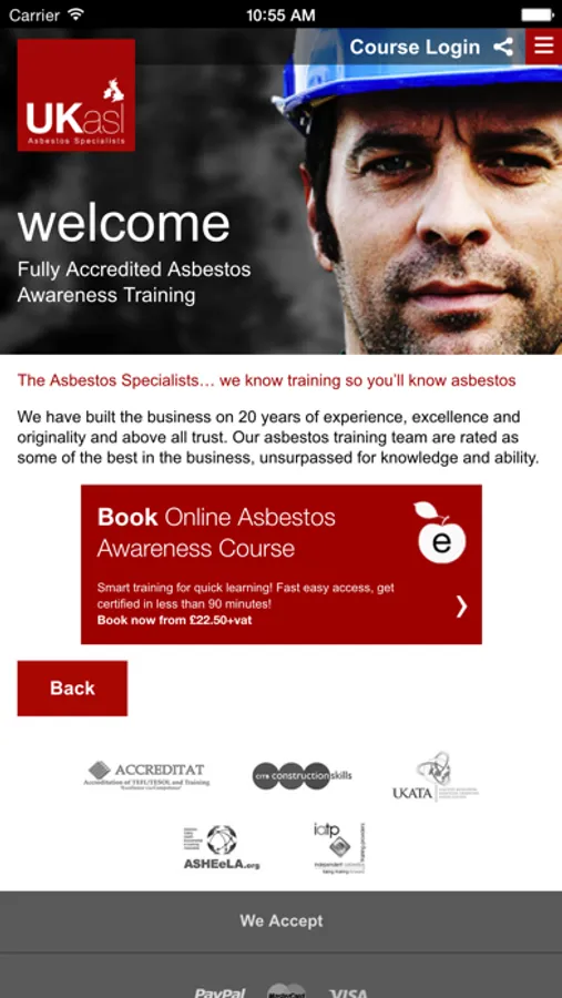 The Asbestos Specialists are a dedicated asbestos awareness and management-training provider. This App is designed specifically for the provision of asbestos awareness training for the construction and refurbishment trades and industries. Providing easy access to fully approved and accredited training in compliance with current UK legislation.