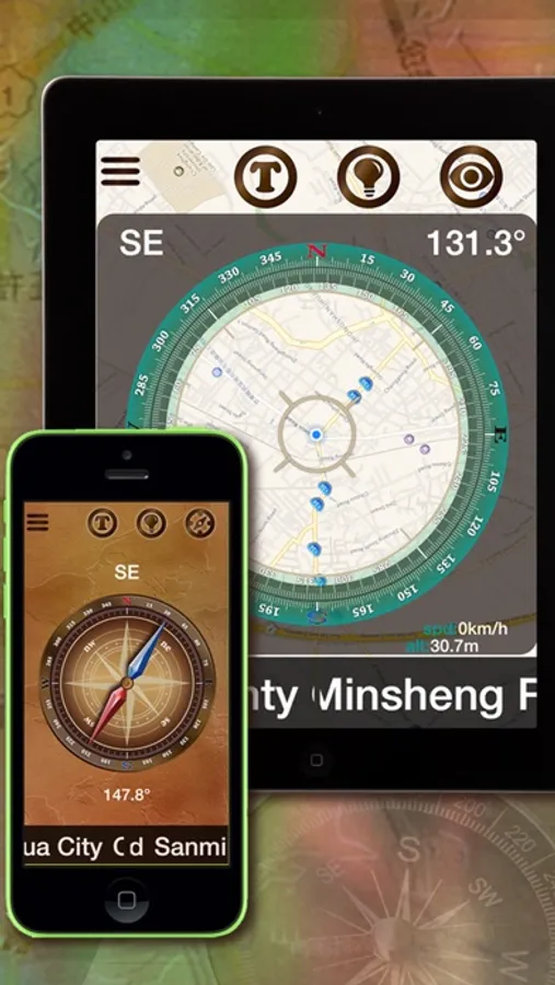It is not only a compass but also a map that tells you where you are. it gives your location info including Elevation,Speed,Coordinates. when you are not using the app, it will automatically turn off the navigation to promote your device efficiency.