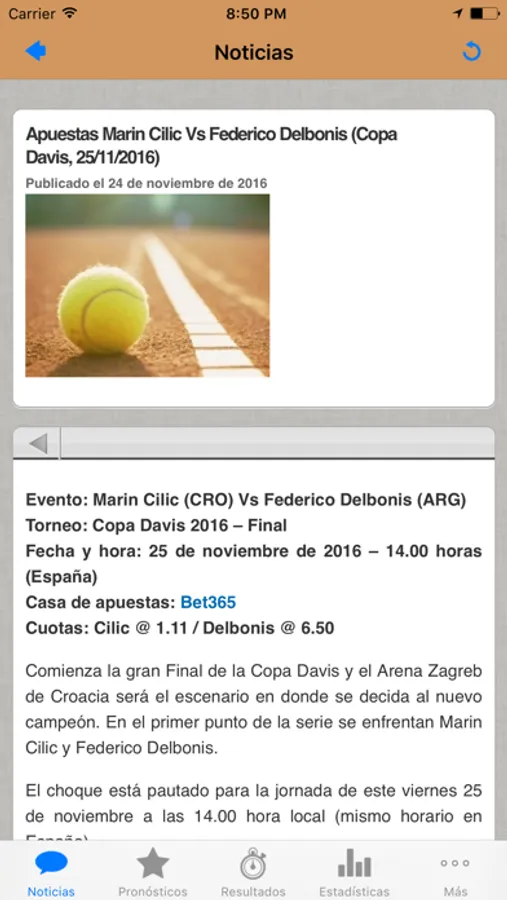 Resultados en vivo, apuestas destacadas, mejores cuotas, calculadora de apuestas, artículos temáticos, son algunas de las herramientas necesarias para apostar bien, que le facilitamos en esta aplicación.