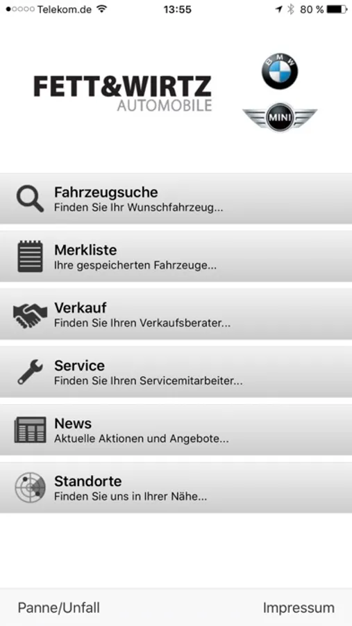 Fett & Wirtz Automobile GmbH & Co. KG ist Ihr BMW- und MINI-Vertragshändler mit vier Standorten am Niederrhein in Moers, Geldern, Kleve und Wesel. Wir haben ständig über 1.000 Neu- und Gebrauchtfahrzeuge im Bestand. Mit unserer App finden Sie schnell und einfach zu Ihrem Wunschfahrzeug. Weiterhin präsentieren wir Ihnen unsere Leistungen im Service, so dass Sie auch morgen noch „Freude am Fahren“ haben.