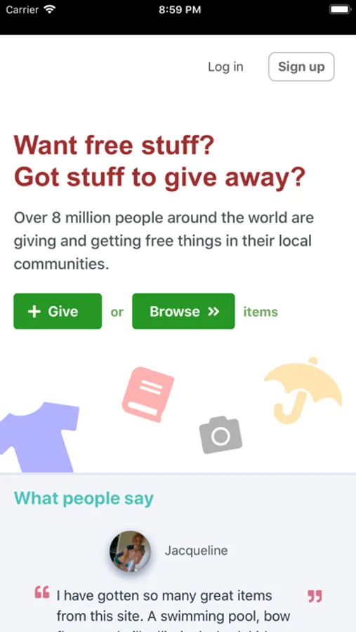 With trash nothing, it's easy to give away your unwanted but reusable items to people in your local community and find free things that other people are giving away. Everything is always free with no strings attached.