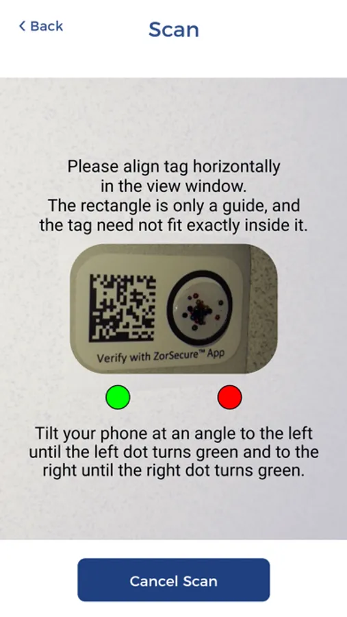 ZorSecure™ is a scanning app used to authenticate items which have had a ZorSecure™ Label applied to them. A ZorSecure™ Label allows for authentic products to be individually tagged and later authenticated by anybody at anytime and anywhere. These labels contain a pairing of a unique barcode and a unique random 3D pattern. By scanning such a label, the ZorSecure™ app can verify the authenticity of item to which the label is affixed.