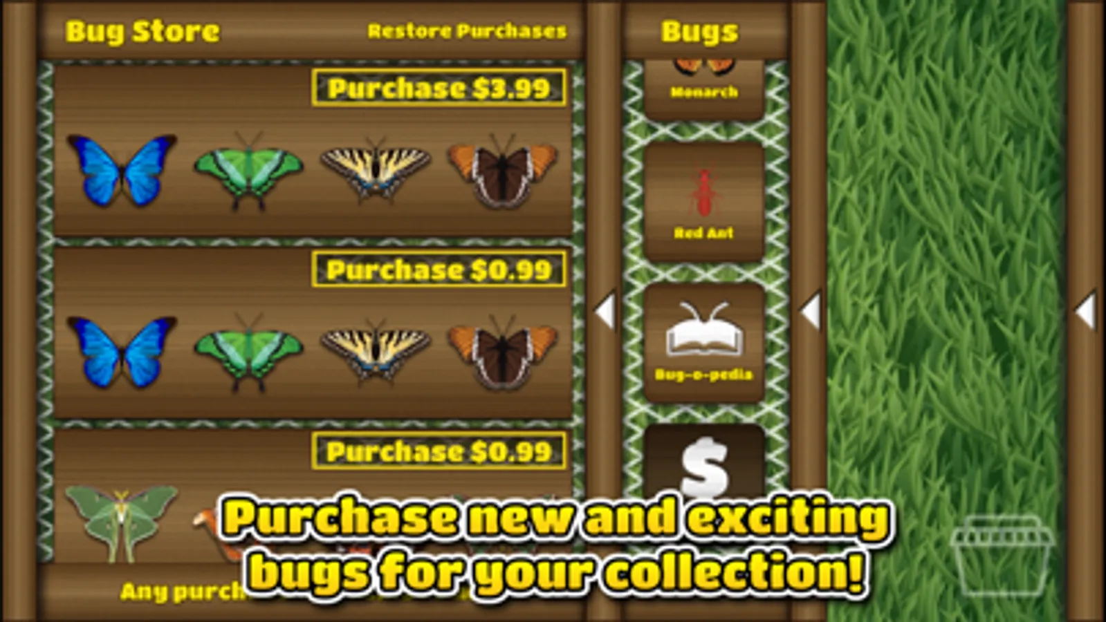 Play with bugs on your iPad or iPhone! Select from 21 different types of bugs! Pretty butterflies, creepy bugs, crawly bugs, flying bugs, and moths are all available to play. Kids and adults love it!