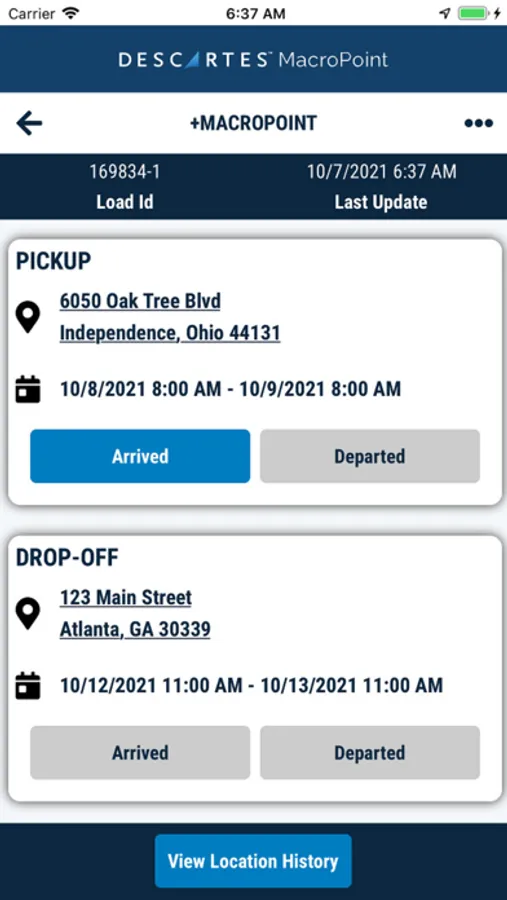 Descartes MacroPoint™ for Truckers is the most trusted and secure app used by drivers. Enjoy automated communication of arrival, departure, and in-transit location data to your customers in real time. Descartes MacroPoint™ for Truckers is free to use. Automatic location updating keeps the app hands-free. Ensure a safe and uninterrupted driving experience with MacroPoint for Truckers.