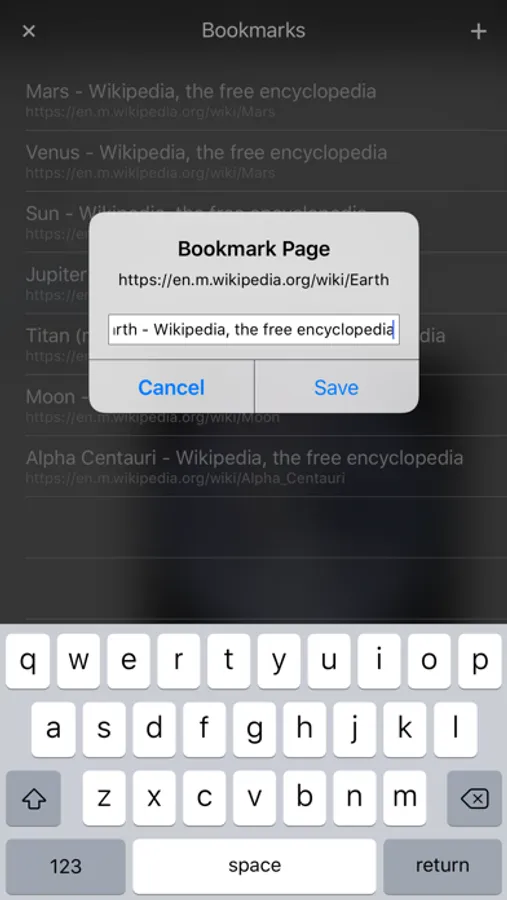 - Save pages to PDF and to read them offline via iBooks