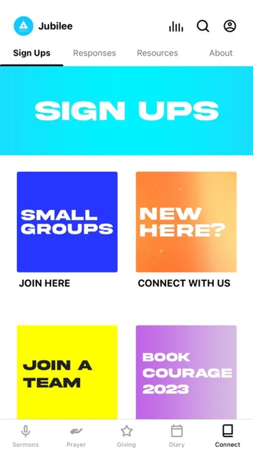 Connect with us; Sign-up for small group, courses & events; Watch or listen to the latest sermon; Catch up on previous series while you're on the go, Request prayer, support & share testimonies; Share content with friends via facebook or twitter; Keep up to date with upcoming events at Jubilee Church London sites.