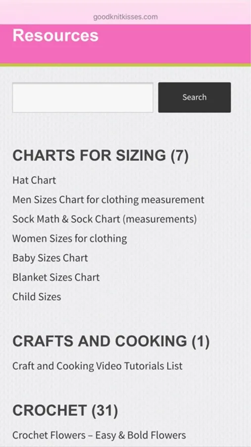 * Resources—Direct access to GoodKnit Kisses resources and patterns * Video