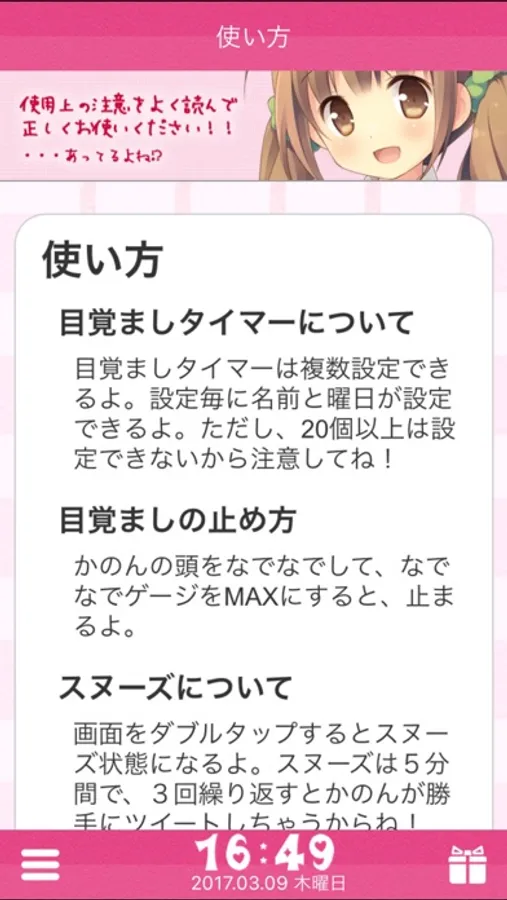 The alarm stops becomes full, so you can hear a cute message from [Kanon],