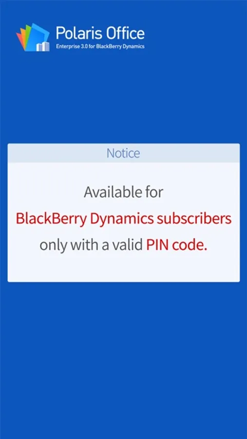 IMPORTANT: POLARS Office for BlackBerry is an enterprise application and not meant for consumer use. This application requires that BlackBerry Dynamics servers are setup in your Company’s IT organization. INFRAWARE does not provide access key for consumer users.