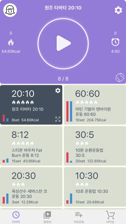 1. 타바타 타이머를 다채롭게 보강했어요.