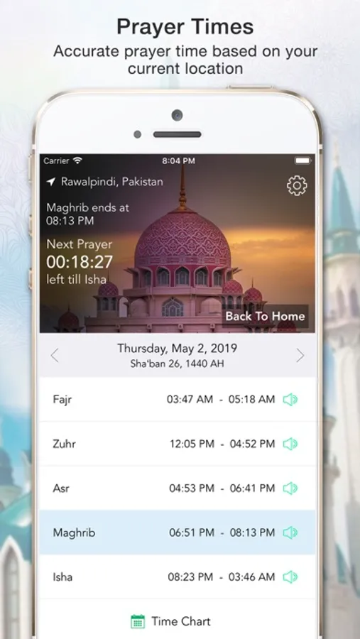 Using your location, it provides you with accurate prayer times for all 5 prayers. It displays each Namaz timing and the amount of time left until the next Azan so that you don’t miss the prayer.