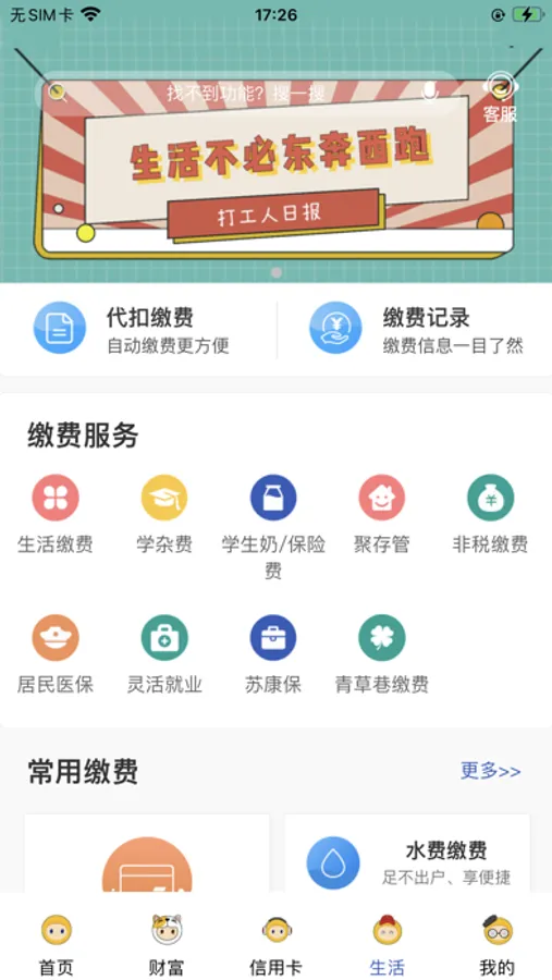 4、生活:代扣缴费 生活缴费 常用缴费 惠民服务