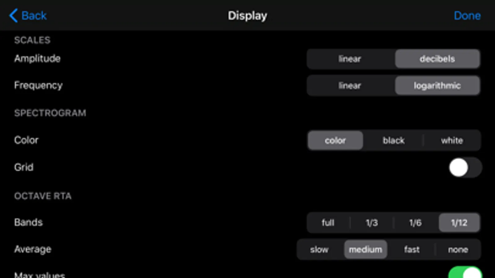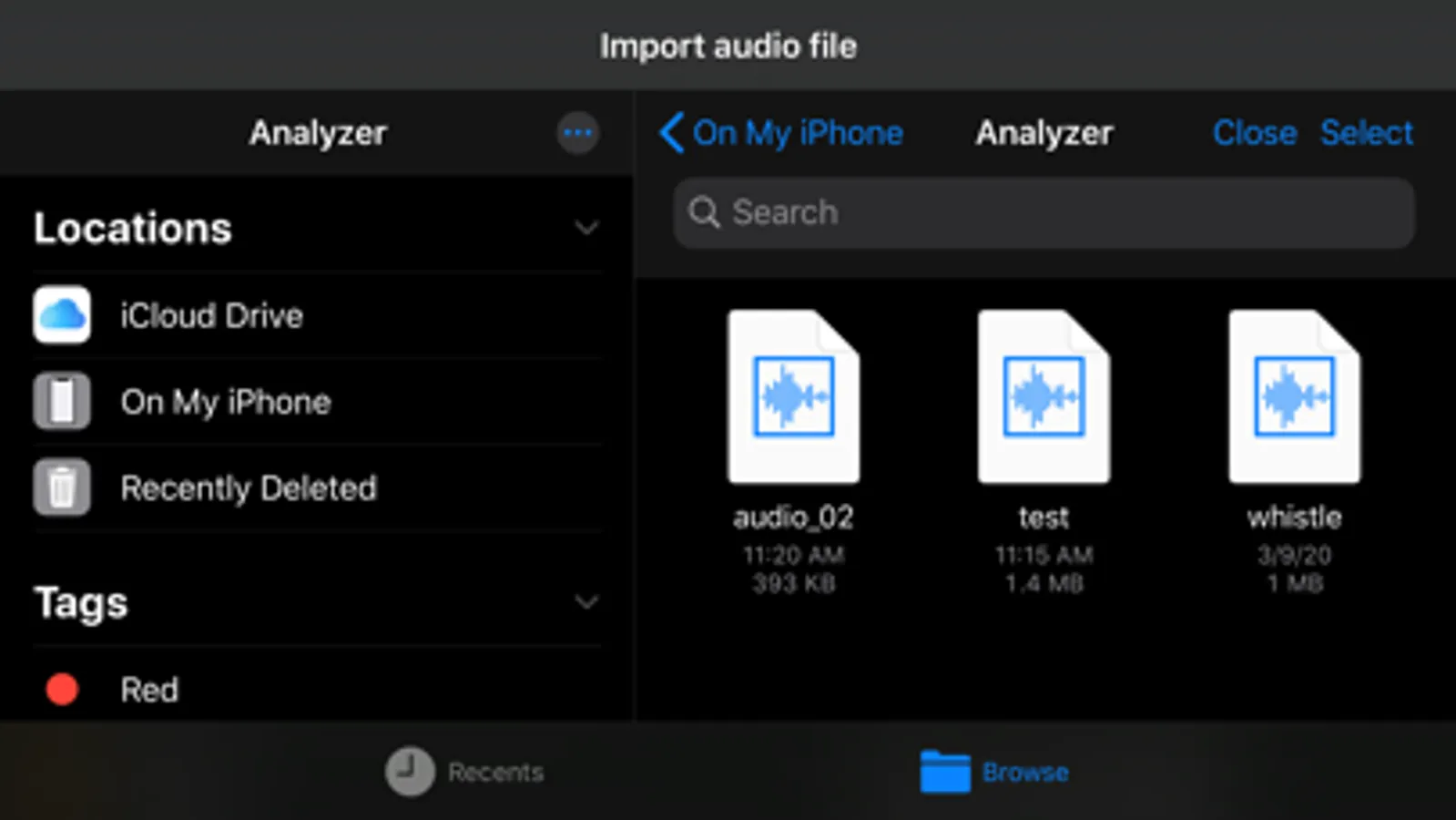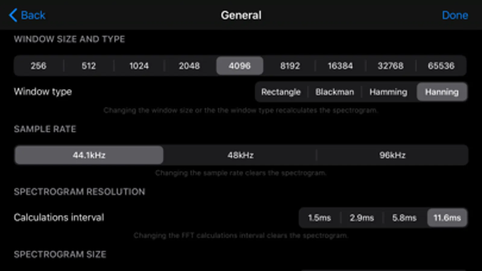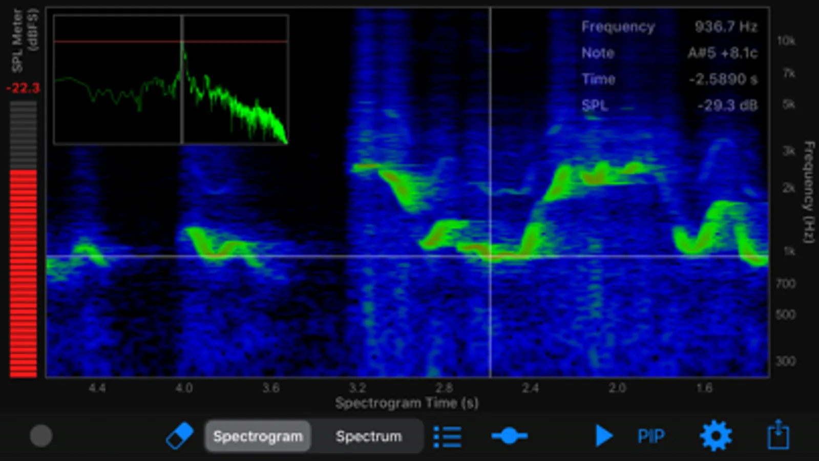 - Exporting to the iOS Document Browser (supports iCloud): audio recordings (wav) and image charts (png)