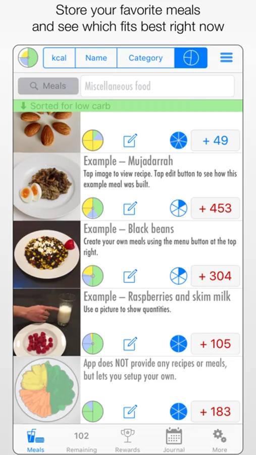• Store your favorite foods, whether a simple snack or a full meal, so you can easily count whenever you eat it again.