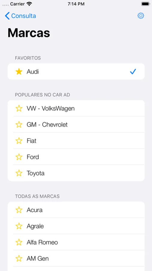 • Possibilidade de indicar as Marcas de veículos favoritas.