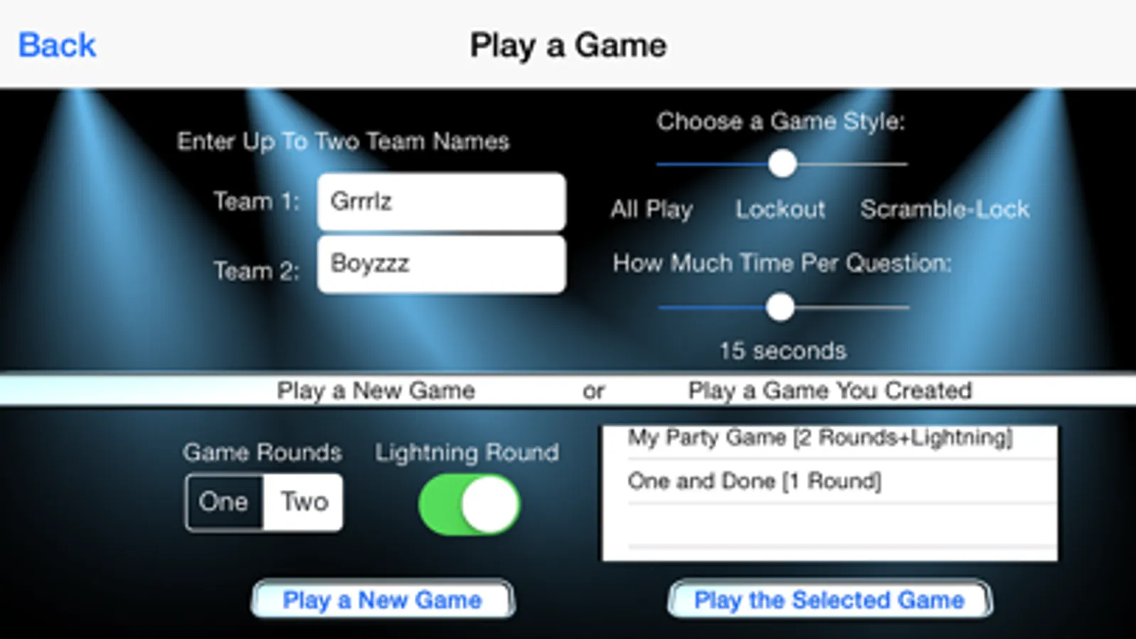 Create a random game from over a thousand questions and dozens of categories, or create your own custom games. You can even create your own categories and questions with our built-in editor.