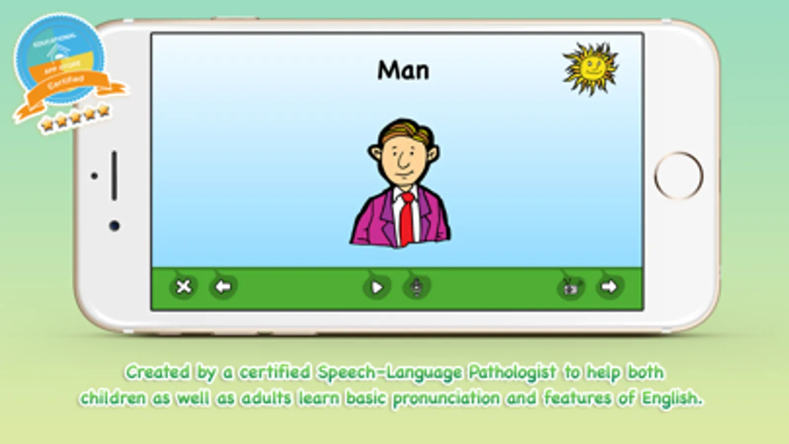 Award winning, research backed articulation approach - Kids Sound Lab is designed for parents and professionals who want to give their children a head-start with pronunciation of English sounds. Five star rating and excellent reviews by Educational App Store in 2017 and voted one out of six best apps in Education at BETT 2016. Created by a certified speech- language pathologist. The sounds are presented in the same order that children acquire sounds, so parents can control the difficulty level and begin by practicing easier sounds. Ideal for families with English as a second language. Children are taught to make the sounds in isolation and then practice the sounds in syllable and words, as they prepare the key phonological skills necessary for reading later in life.