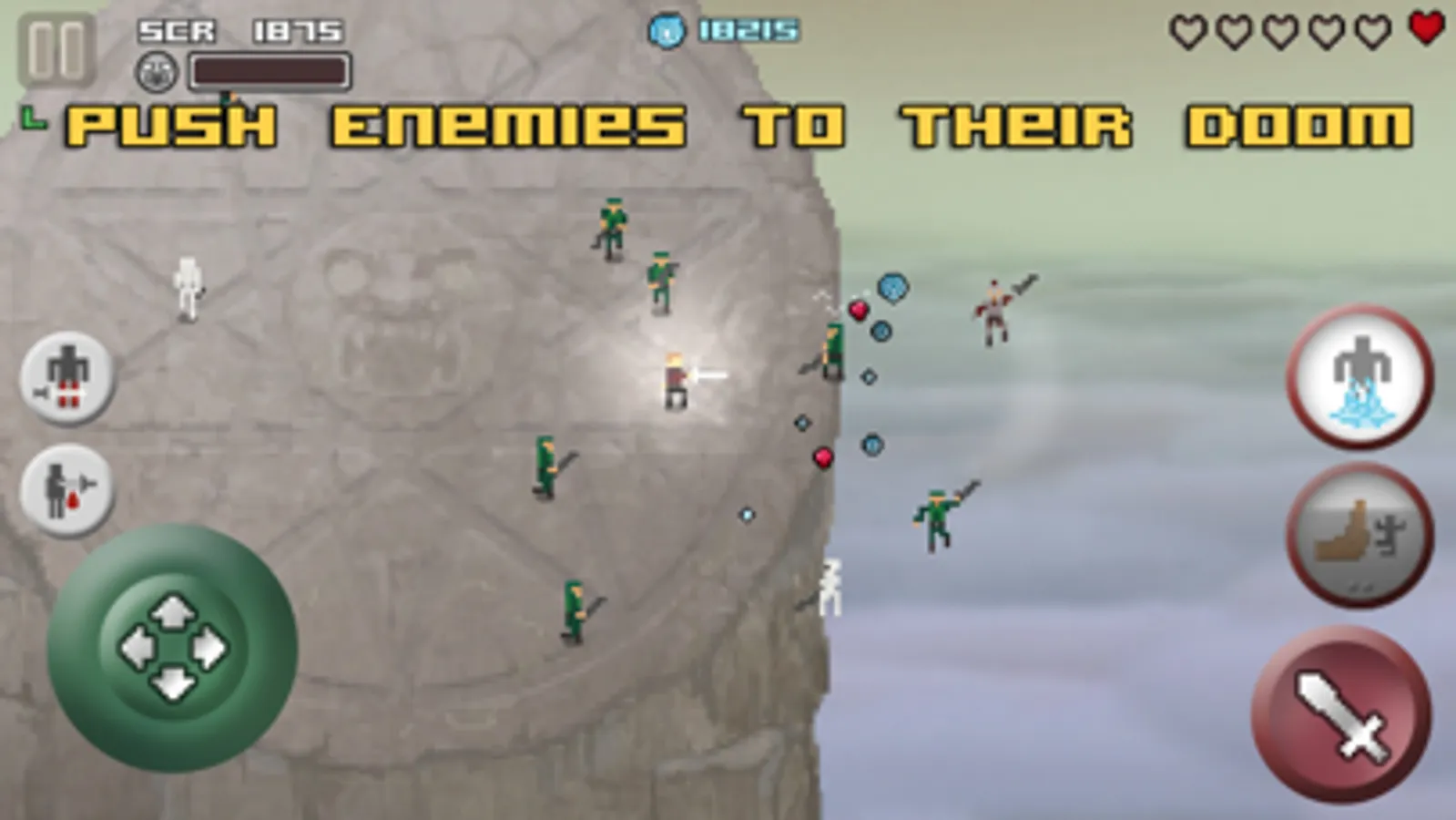• Push your opponents off the pillar for easy kills and more points or strike them where they stand to get their loot