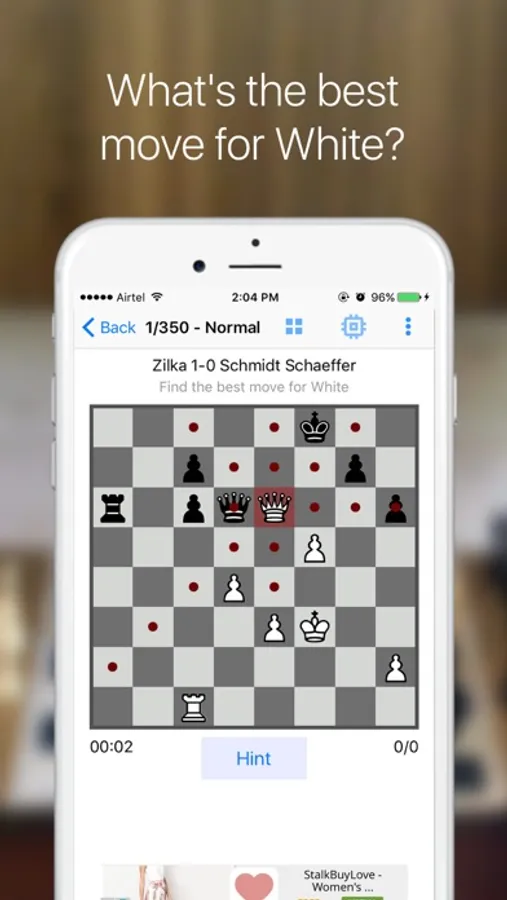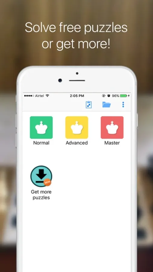 Chess puzzles are an ideal way to practice without having to find an opponent or spend time playing an actual game. iChess presents 1000 offline puzzles from real FIDE tournament games. Just launch and start solving!