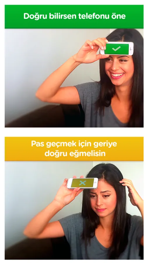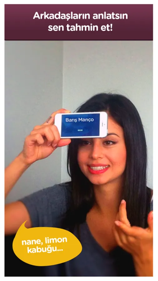 Telefonu alnına koy ve çıkan isimleri arkadaşının verdiği ipuçlarıyla tahmin etmeye çalış. Süre bitmeden en çok ismi bil!